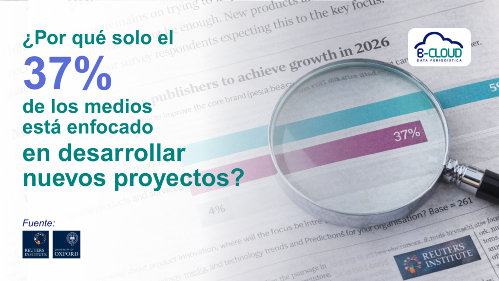 Según el reciente estudio “Trends and Predictions 2026” de Reuters Institute, hay una dato clave que nos hace reflexionar, solo el 37% de los líderes de medios planea centrar su crecimiento este año en el desarrollo de nuevos productos y servicios. Pero, ¿por qué este número no es más alto si todos sabemos que innovar es fundamental para la velocidad en la que avanzan los medios?